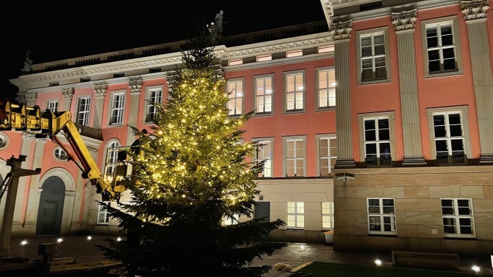 Im Innenhof des Landtages steht pünktlich zum 1. Adventswochenende eine acht Meter hohe Nordmanntanne. Mit dem Errichten und Anbringen der Lichterketten waren die fleißigen Helferinnen und Helfer bis in den frühen Abend beschäftigt. Der Weihnachtsbaum kann nicht nur zu den regulären Öffnungszeiten des Landtages von montags bis freitags bestaunt werden. Auch am Wochenende ist der Innenhof für interessierte Besucherinnen und Besucher geöffnet.